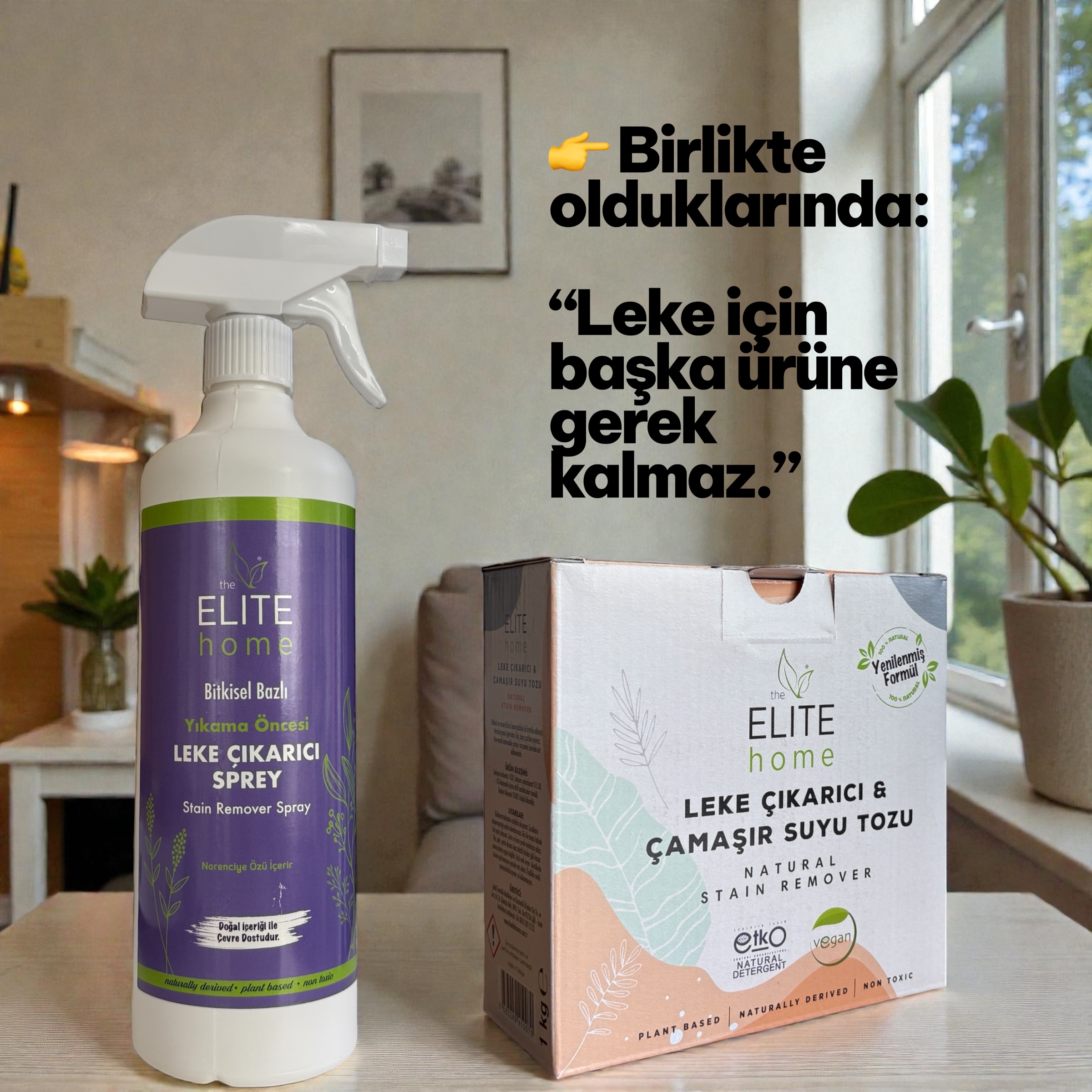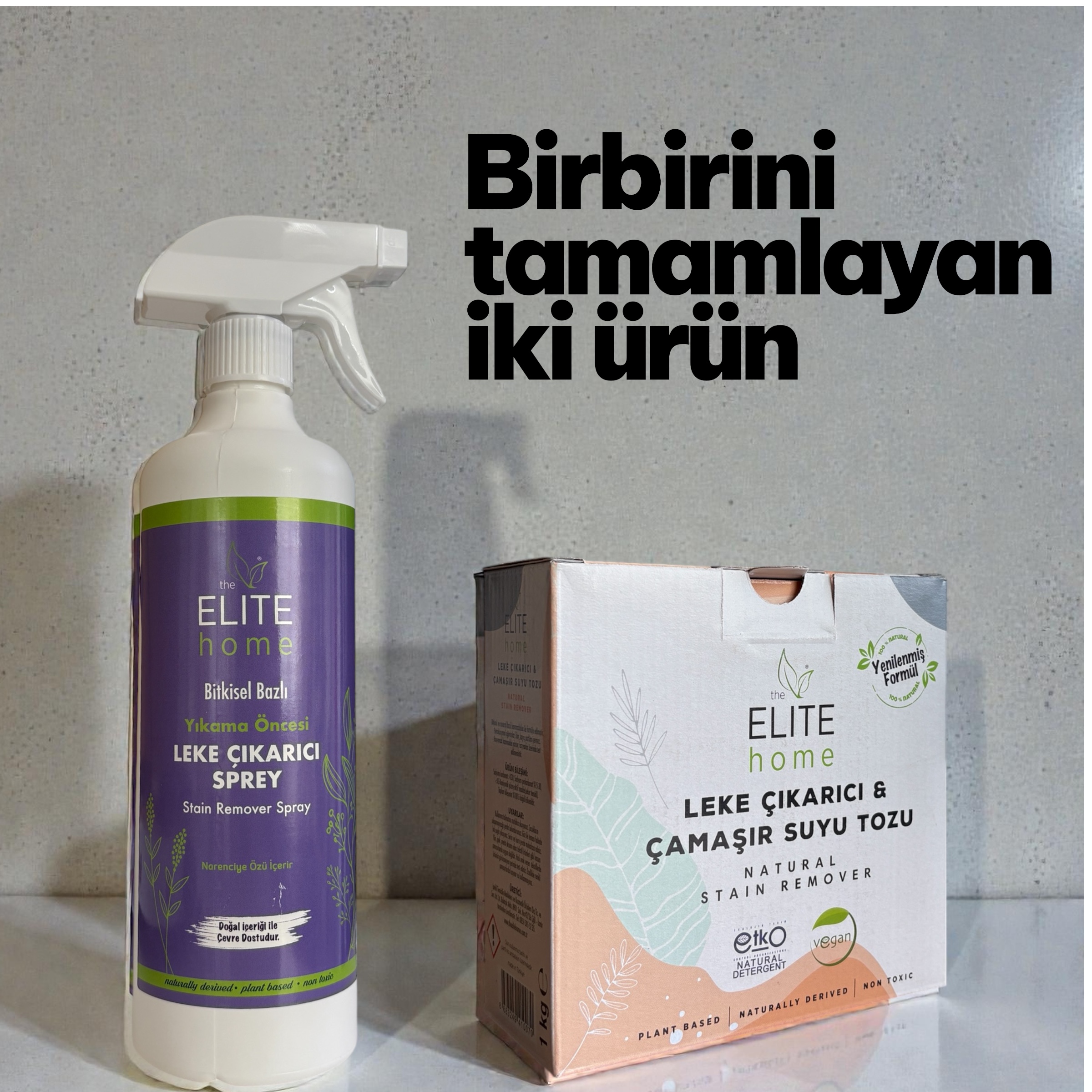 Bitkisel Bazlı Yıkama Öncesi Leke Çıkarıcı Sprey 750 ml +Doğal Ve Vegan Sertifikalı Leke Çıkarıcı Ve Çamaşır Suyu Tozu 1 Kg