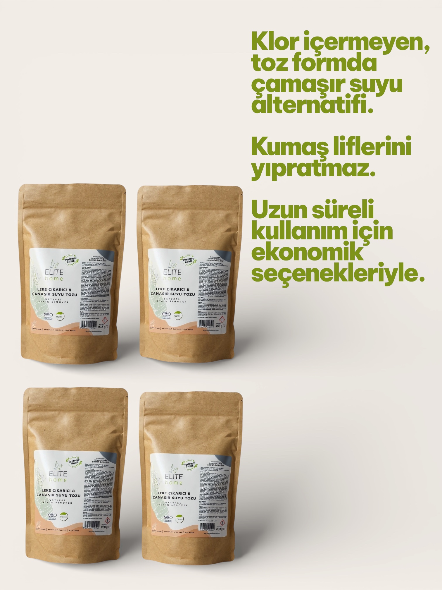 Çamaşır suyu tozumuz mineral ve bitkisel bazlı hammaddelerle formüle edilmiştir.