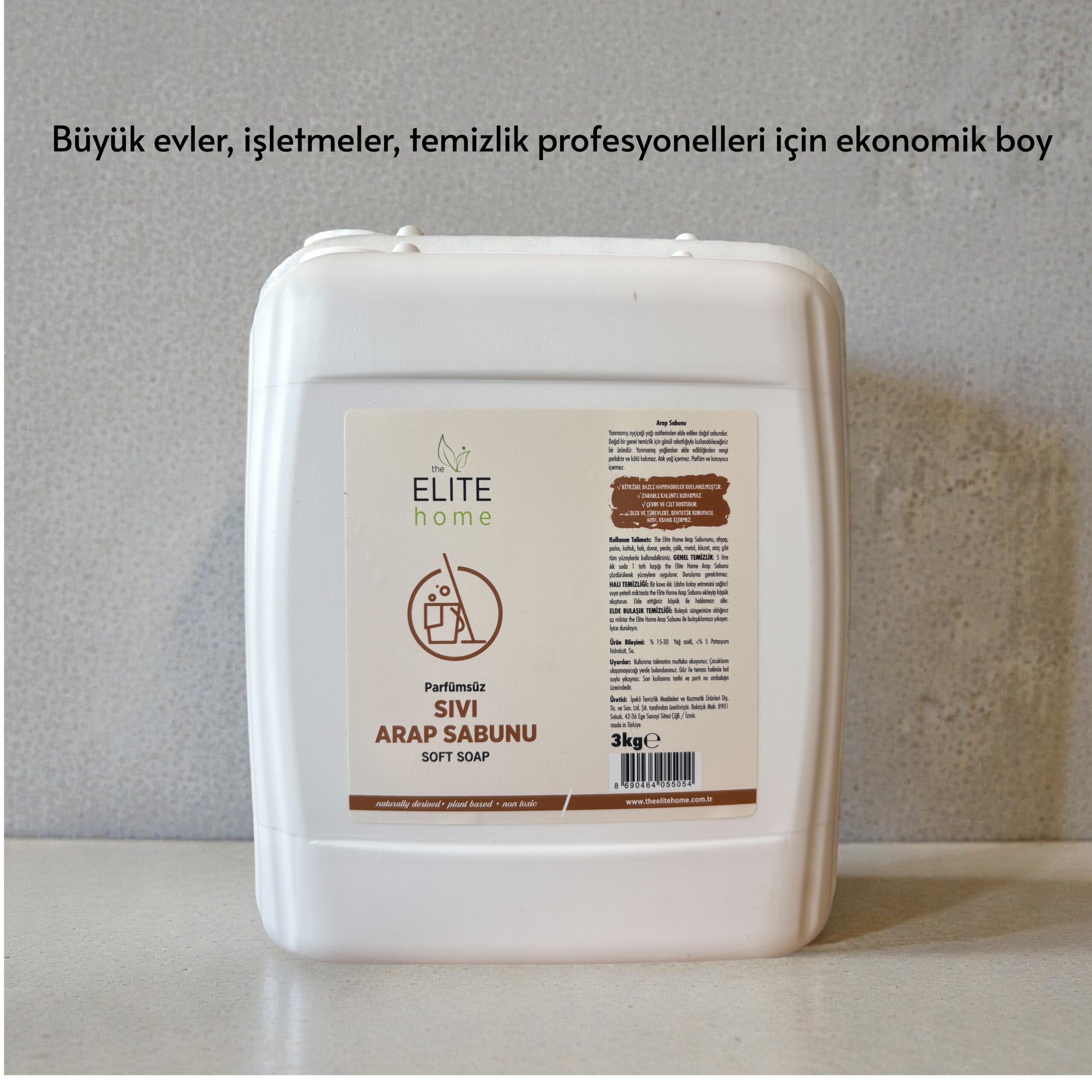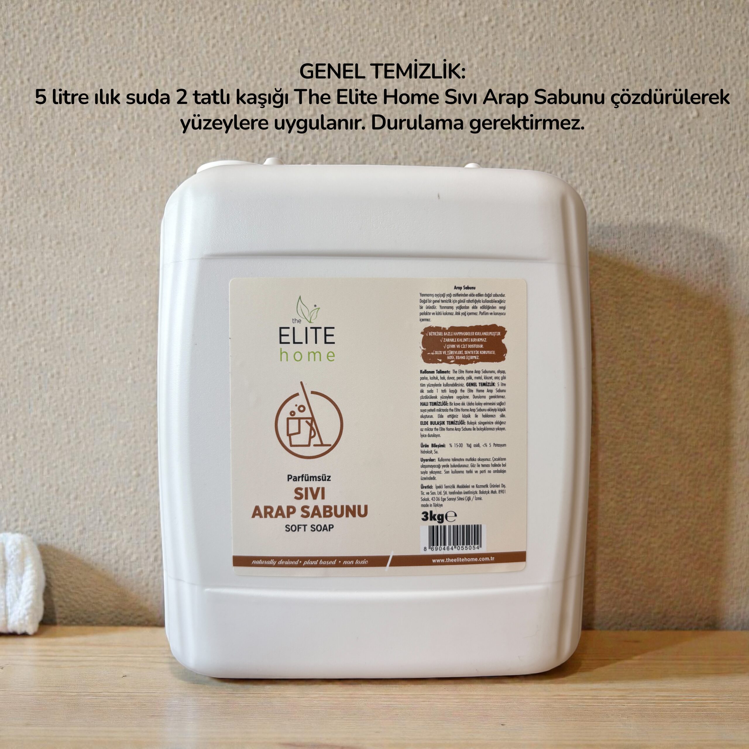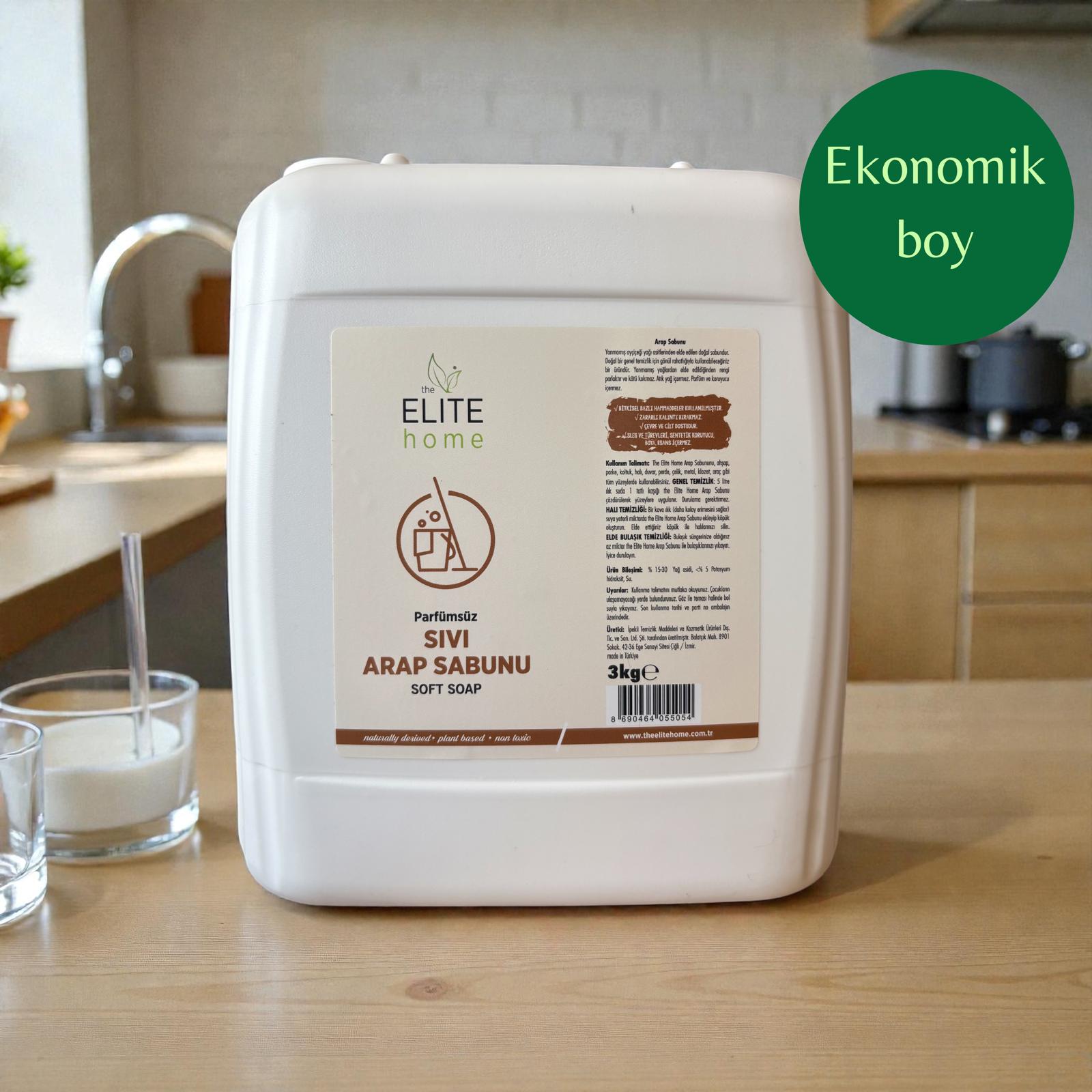 Konsantre yapısı nedeniyle sadece 1 yemek kaşığı The Elite Home Sıvı Arap Sabunu 5 litre ılık suda çözdürülerek yüzeylere uygulanır. Durulama gerektirmez.