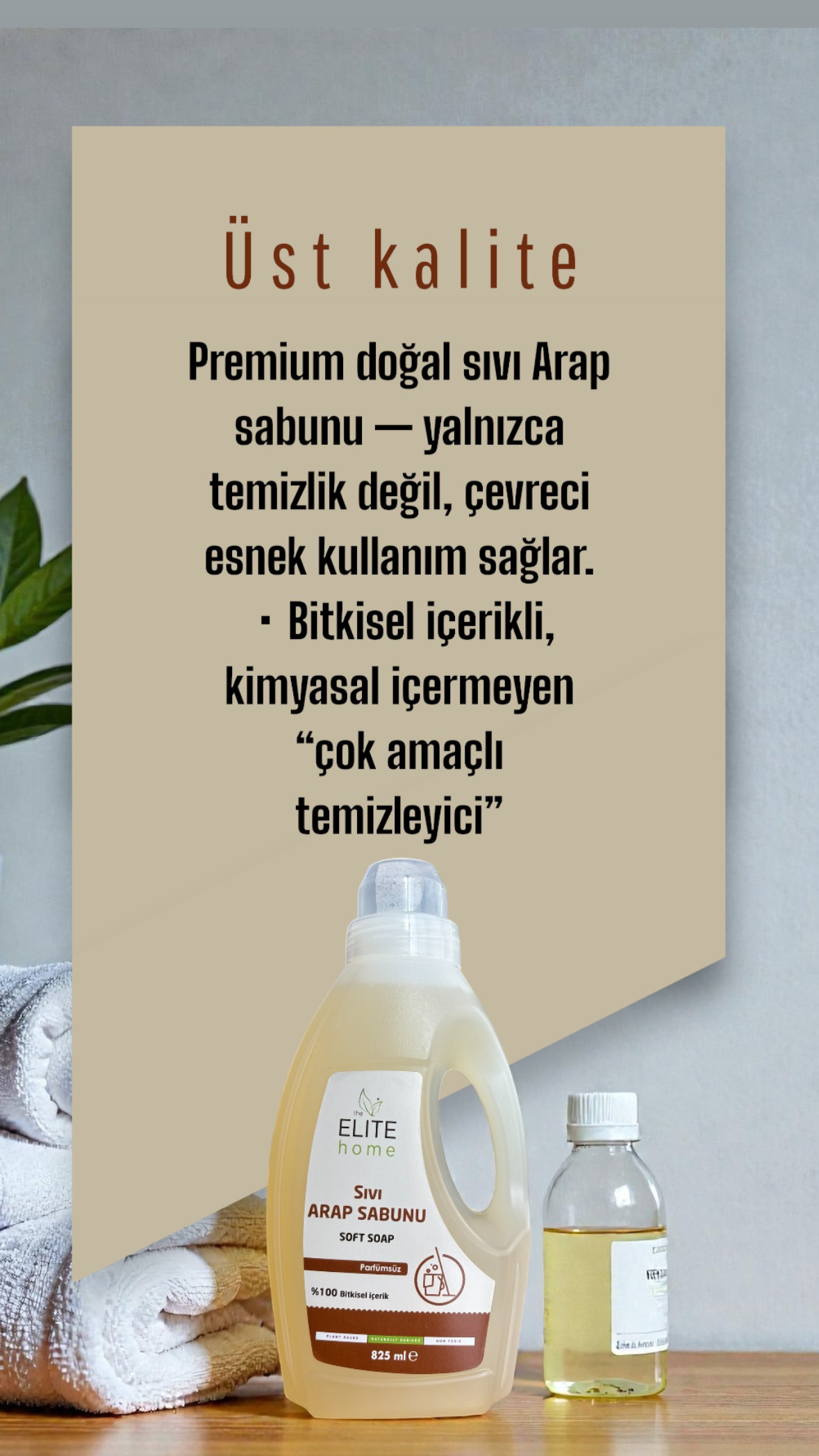 Premium doğal sıvı Arap sabunu — yalnızca temizlik değil, aynı zamanda eco-friendly ve vegan kullanım sağlar.